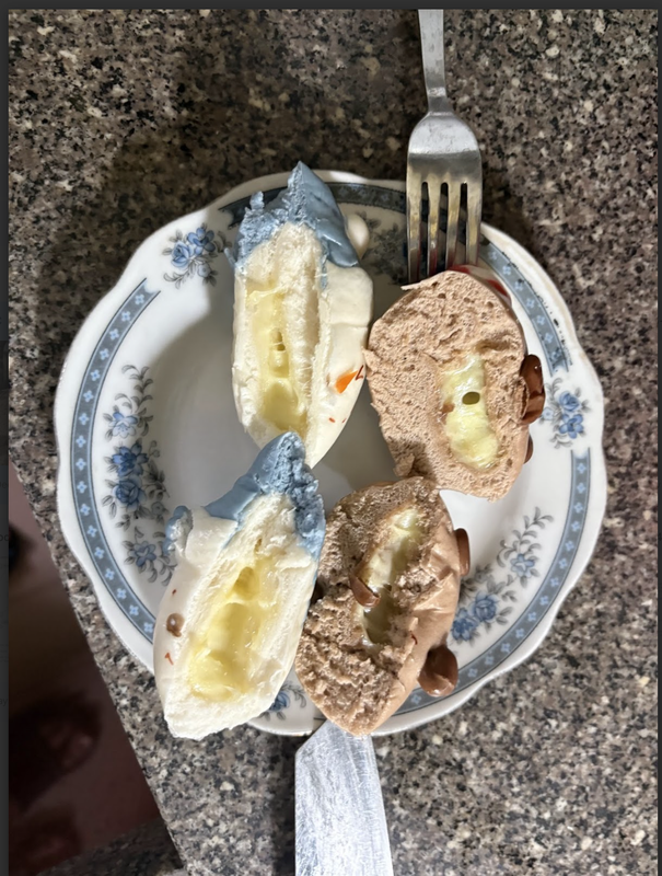 if anyone wants the receipt it can be found here: https://www.wyldflour.com/fluffy-cheese-stuffed-bao-aka-softest-grilled-cheese-in-the-world/ (Note: If you want the unique colours/designed you need to add food colouring/and shape the dough before cooking).